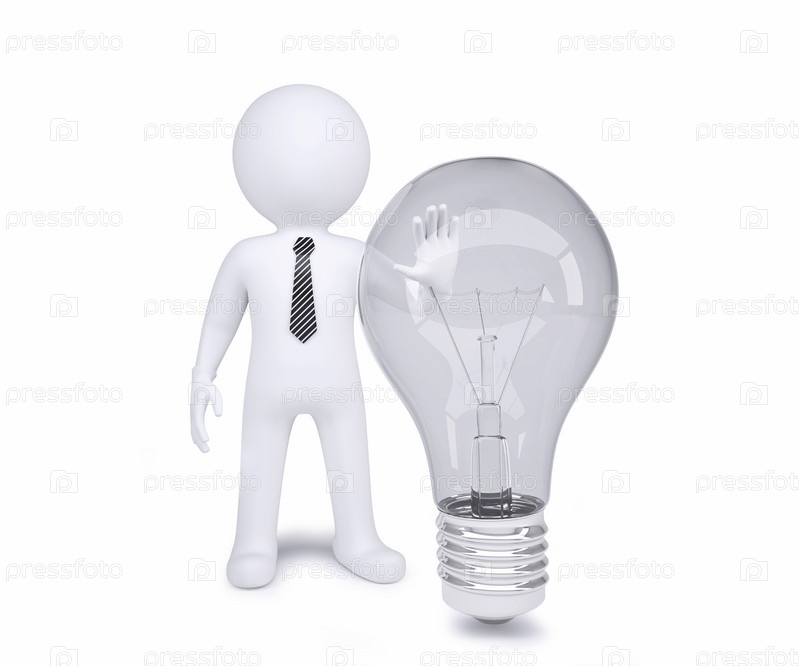 Белый человек рядом с электрической лампочкой