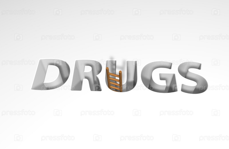Слово 'наркотики и лестница' - 3D иллюстрация