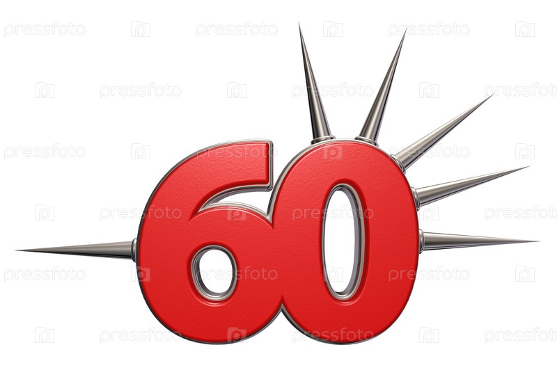 Число 60 с шипами на белом фоне - 3d иллюстрация