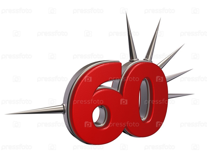 Число 60 с шипами на белом фоне - 3d иллюстрация