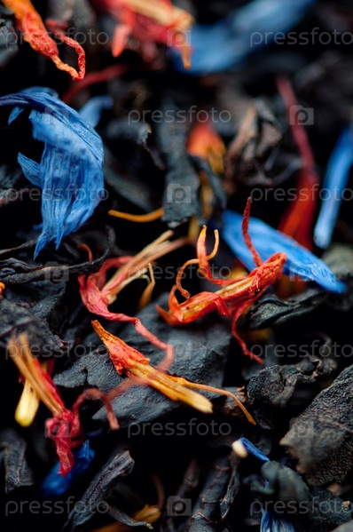 Черный чай и сухие цветы, макро