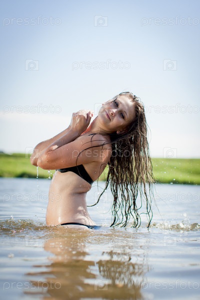 Девука, купаюшаяся в озере