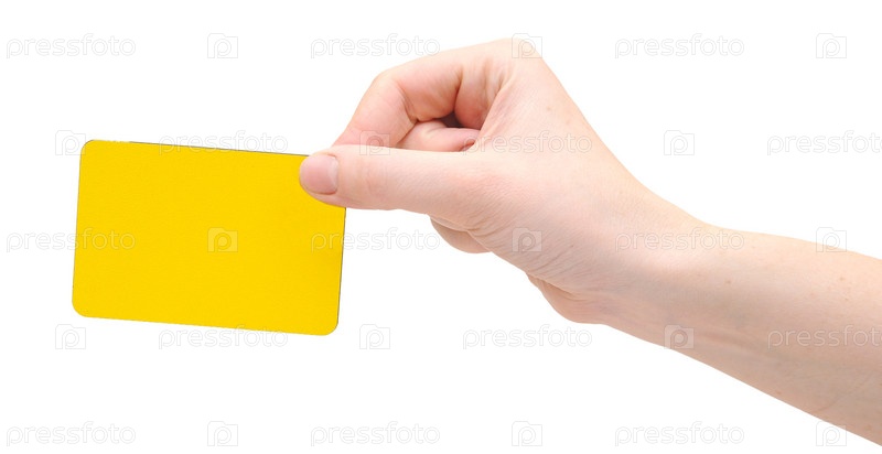 Женская рука держит чистую карточку, изолированная на белом фоне
