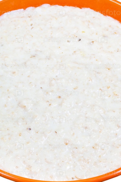 Овсяная каша с молоком в оранжевой тарелке