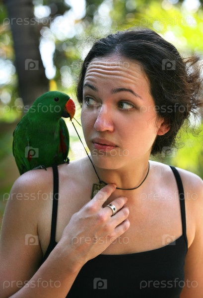 Девушка с зеленым попугаем