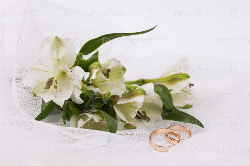 Красивые белые цветы на белой вуали
