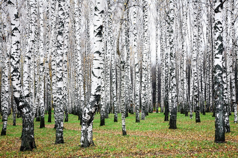 Красивая березовая роща в октябре