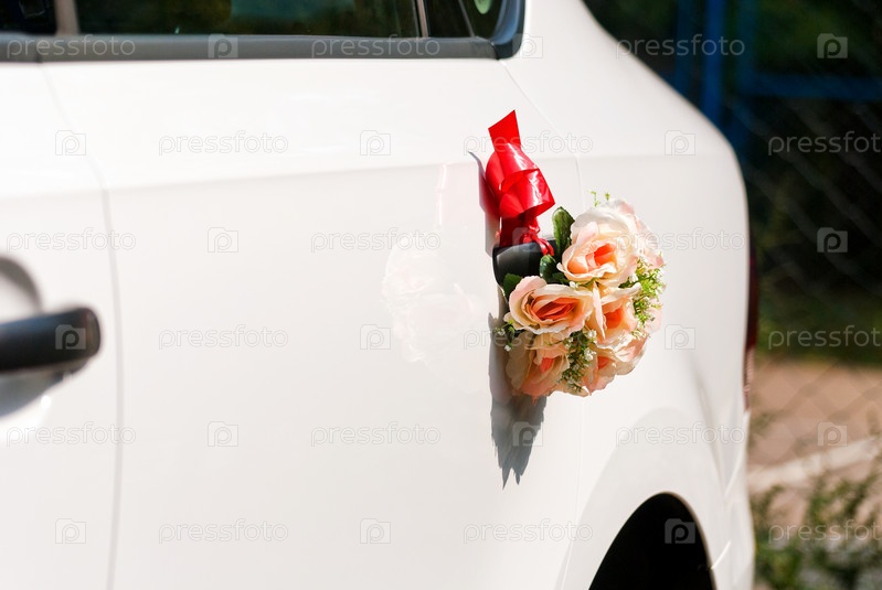 Букет цветов на ручке автомобиля