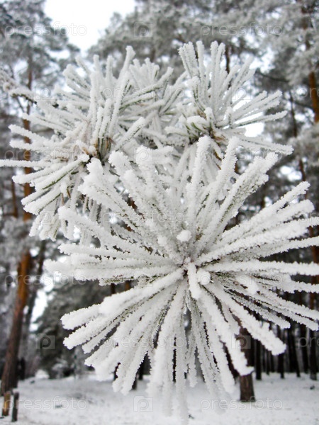 Хвоя сосны в инее