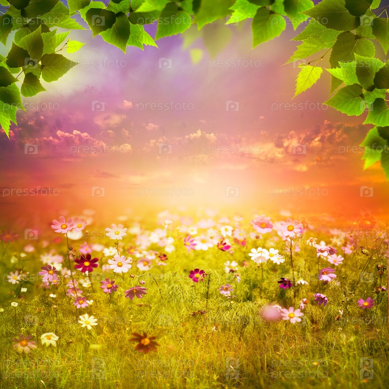 Мистический вечер на лугу. Абстрактный естественный фон для вашего дизайна