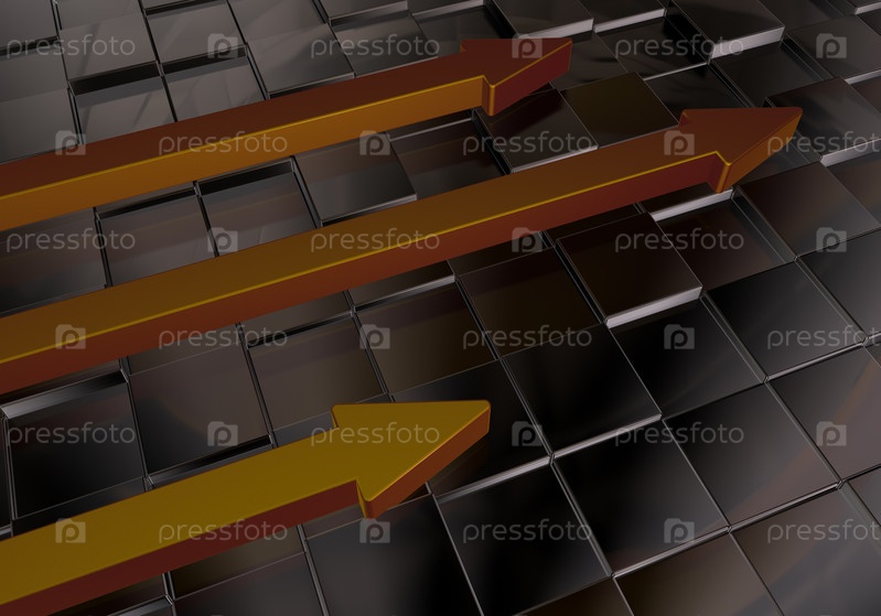 Три стрелки на абстрактных кубиках, 3d иллюстрация