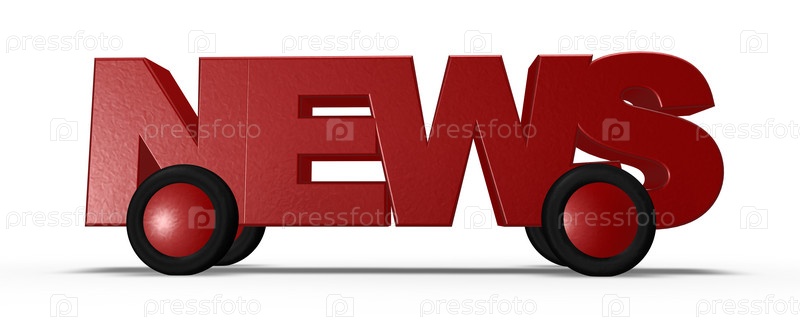 Слово 'новости' на колесах - 3d иллюстрация