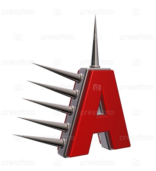 Буква А с металлическими шипами на белом фоне - 3d иллюстрация
