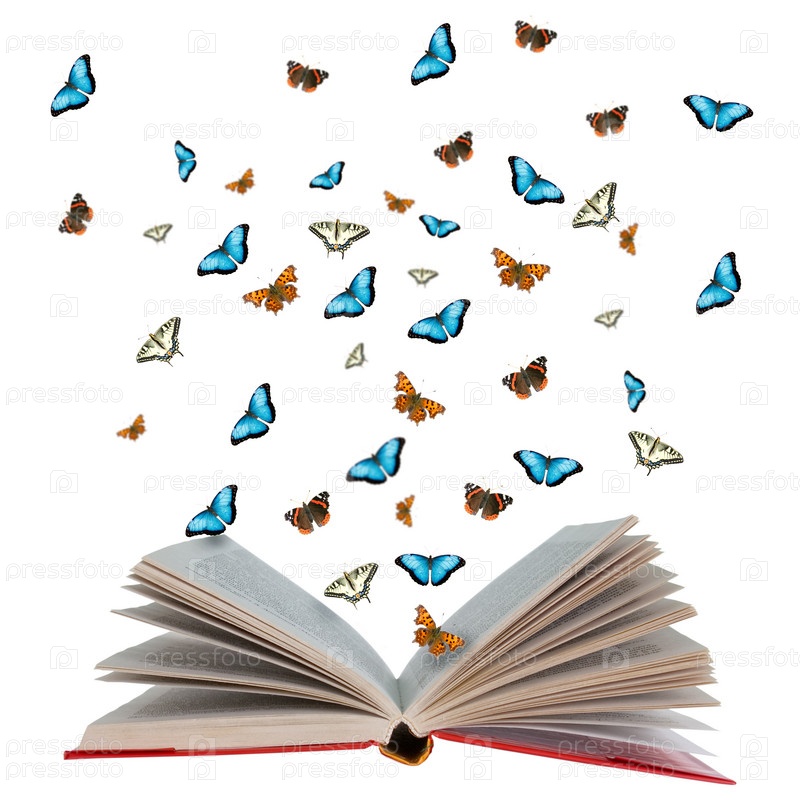 Открытая книга с бабочками на ней