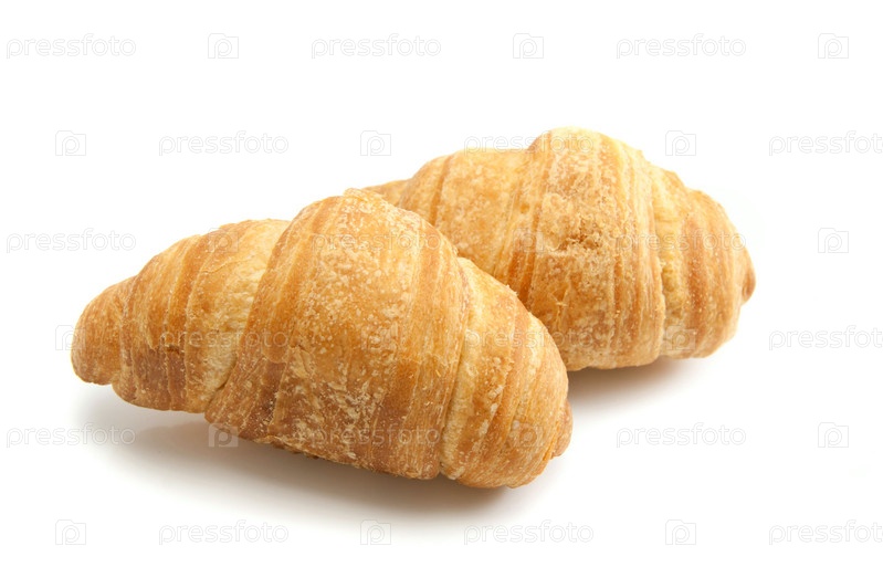 Два свежих круассана на белом фоне