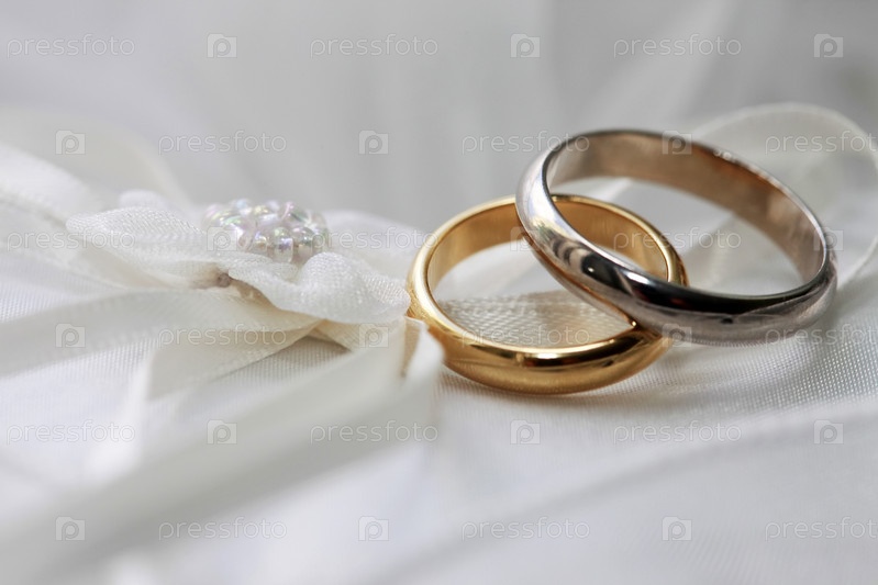 Обручальные кольца на атласной ткани