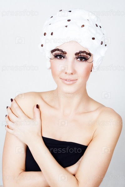 Молодая женщина со взбитыми сливками на голове