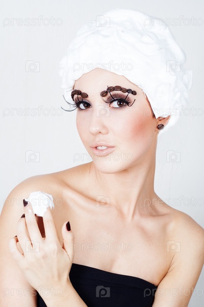 Молодая женщина со взбитыми сливками на голове