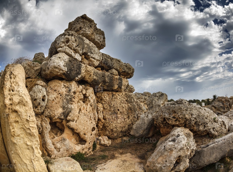 Мальта, остров Гозо, развалины храмов Гжантии (3600-3000 до н.э.), мегалитический комплекс был построен в три этапа общиной фермеров и скотоводов, населяющих небольшой остров Гозо. Ритуалы жизни и плодородия, по-видимому, практикуются внутри храмов более