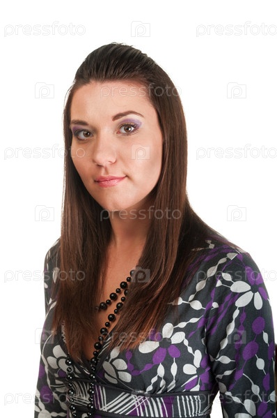 Портрет красивой молодой женщины на белом фоне