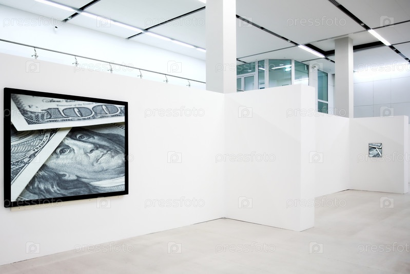 Баннер на экспозиции с фотографией долларовых банкнот