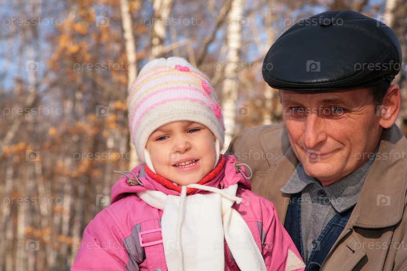 Портрет деда с внучкой в осеннем лесу