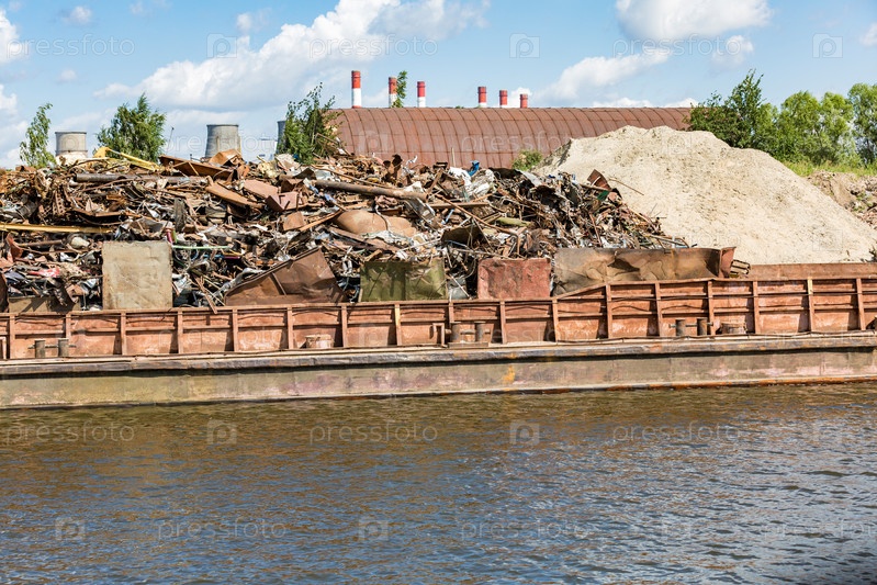 Куча металлолома на берегу реки