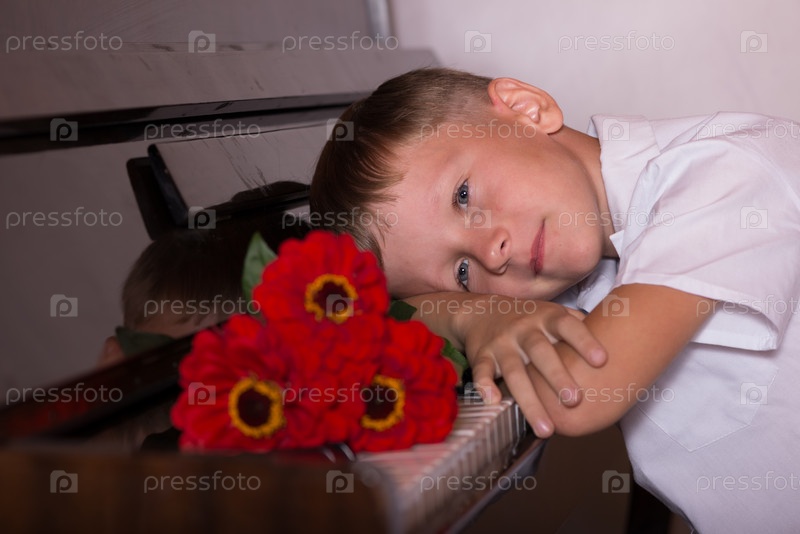 Мальчик с цветами у пианино