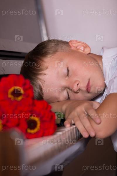 Мальчик с цветами на пианино