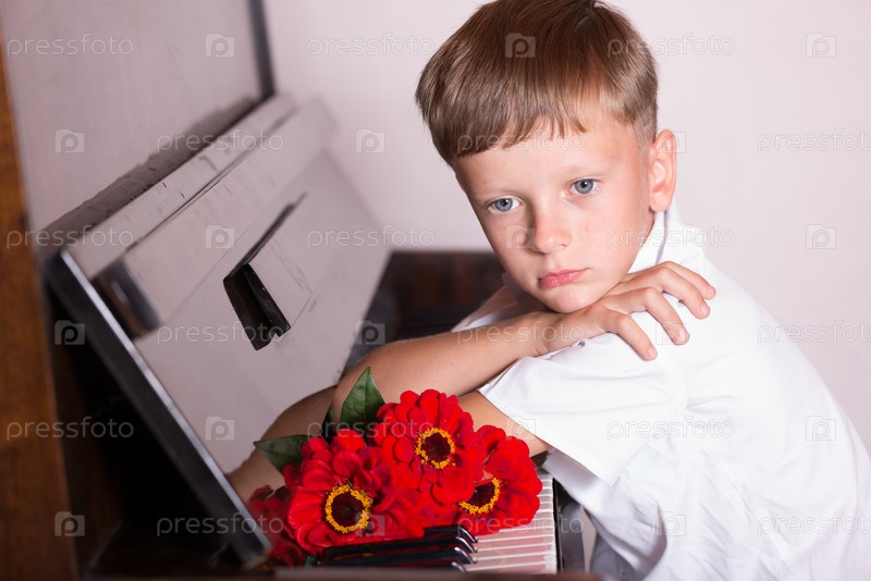 Мальчик с цветами у пианино