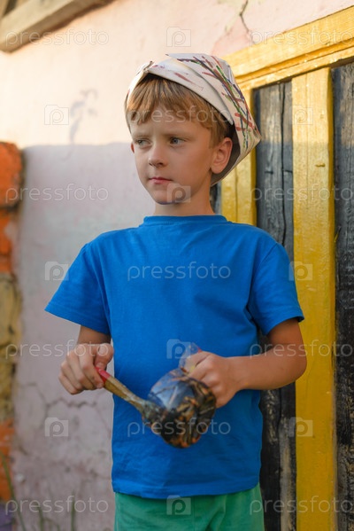 Мальчик красит двери