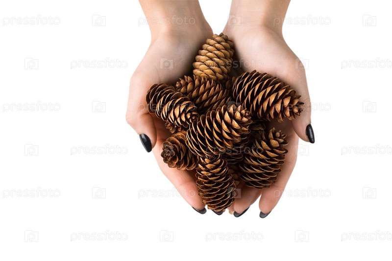 Девушка держит шишки