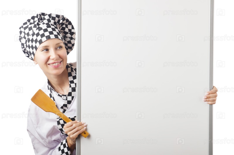 Повар с белым баннером