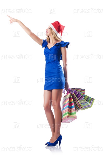 Молодая женщина с рождественскими покупками