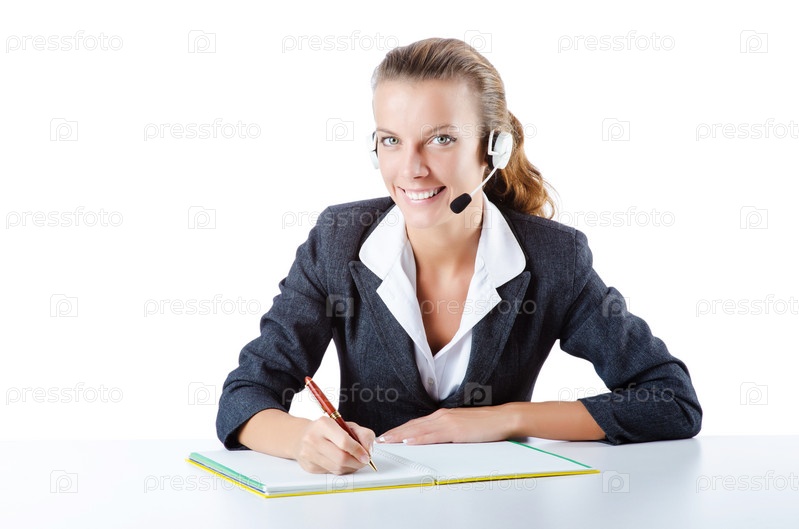 Оператор службы технической поддержки на белом фоне
