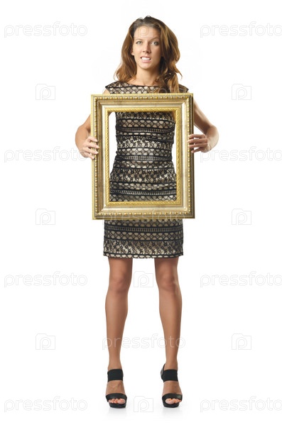 Привлекательная женщина с рамкой в руках