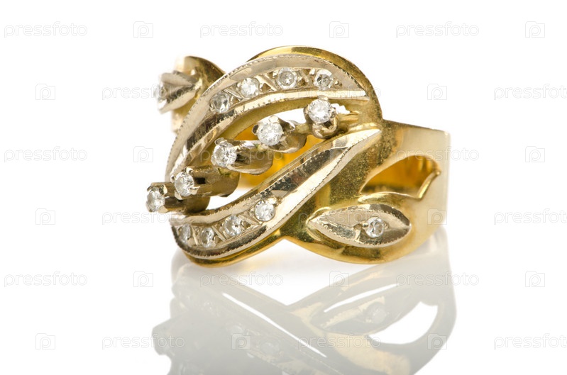 Ювелирное кольцо на белом фоне