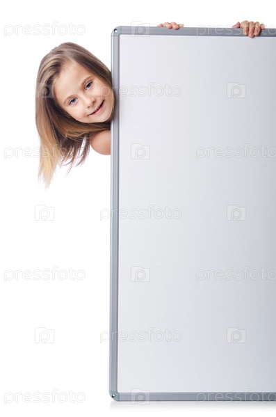 Милая маленькая девочка с баннером на белом фоне