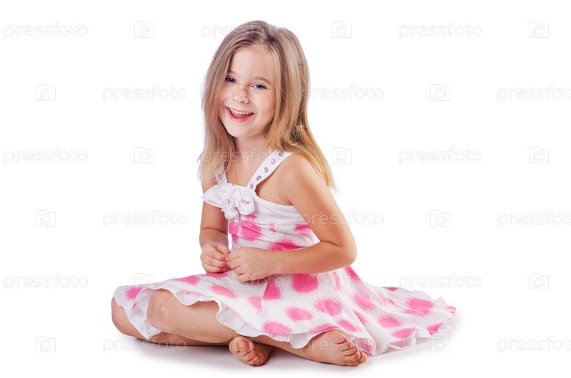 Маленькая милая девочка на белом фоне