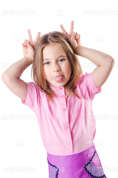 Милая маленькая девочка на белом фоне