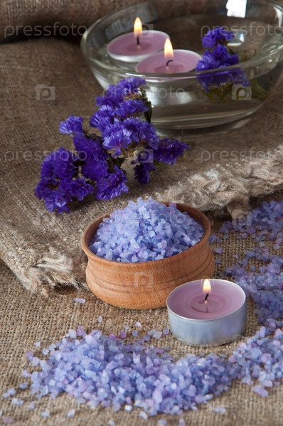 Соли и фиолетовые цветы лаванды