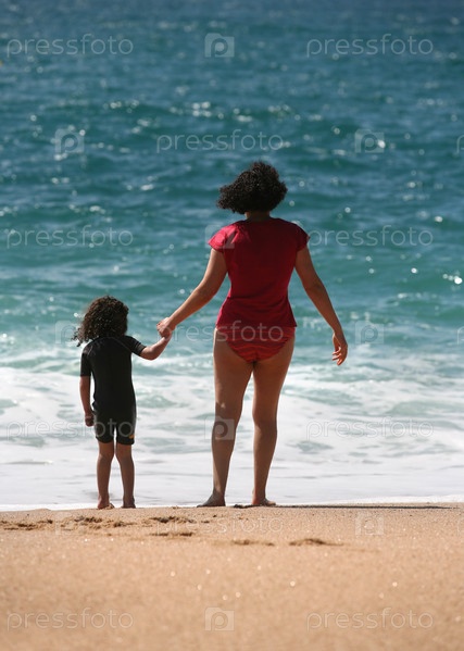 Мама с детьми на пляже