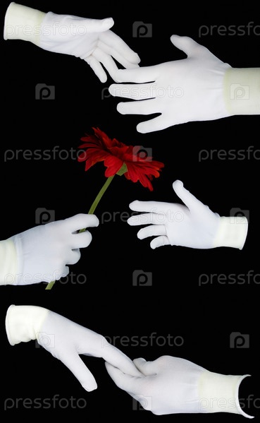 Человеческие руки в белых перчатках на черном фоне