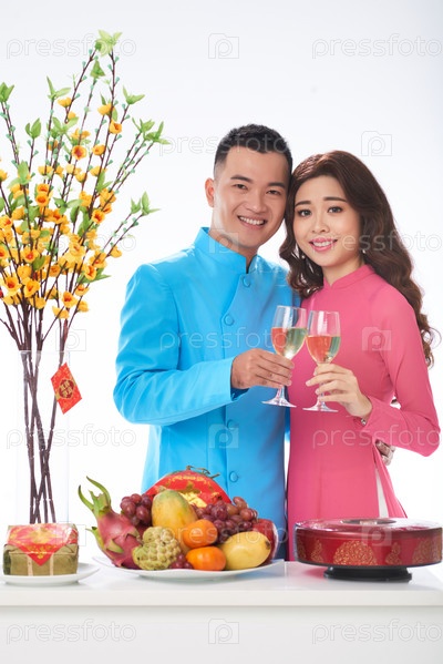 Молодая пара празднует