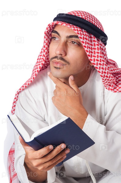Араб молится на белом фоне