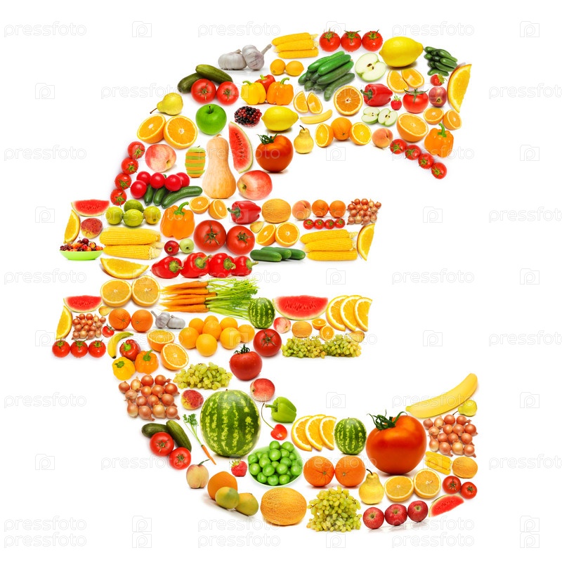 Имвол евро из различных фруктов и овощей