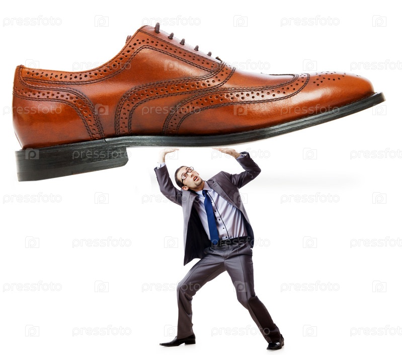 Концепция женского господства с обувью и мужчиной