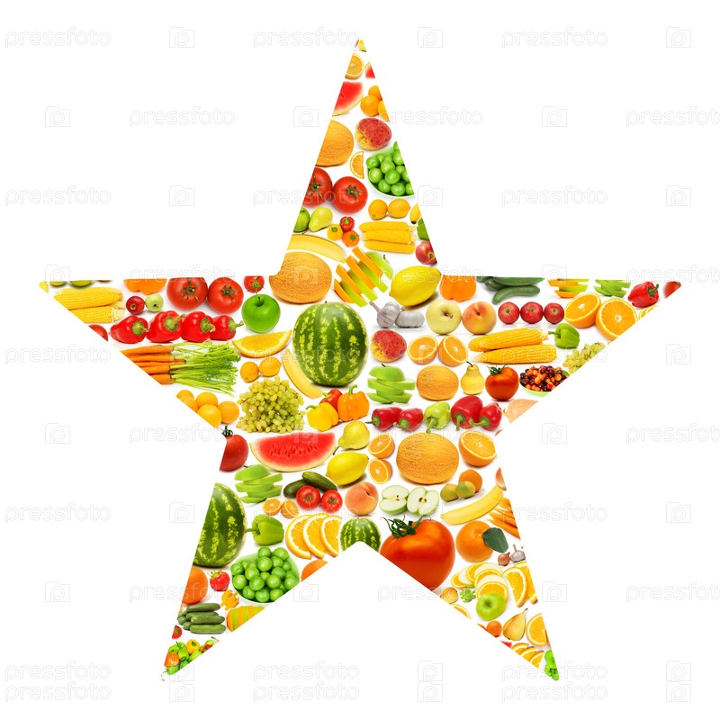 Звезда из различных фруктов и овощей