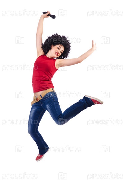 Женщина с афро-стрижкой на белом фоне