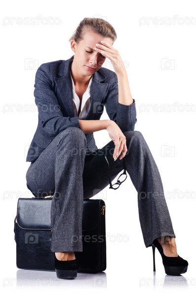 Бизнес-леди с портфелем на белом фоне